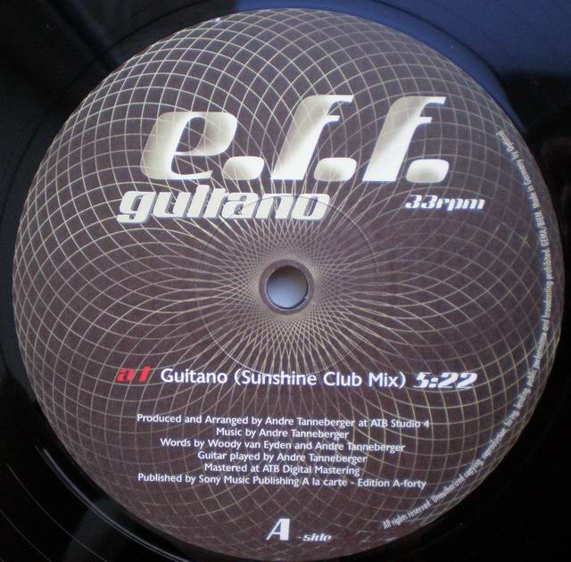 На переломе 1998-99 годов, Андре и Вуди аккомпанировали друг другу в сольном творчестве и плодили новые проекты, одним из которых стал E.F.F. Если честно, это даже трудно назвать полноценным проектом — единственный сингл на виниле — скорее подходит обозначение: ещё один полигон для тестирования, противовес агрессивным Sequential One/SQ-1 и романтическому стилю ATB. Ребята записали компактный EP с прицелом на транс — “Guitano”, и чилл — “Beachvibe”, в последнем особенно чувствуется будущий стиль Андре, которым он будет завершать свои альбомы вместе с Вуди, а ещё позже отведёт ему персональный диск.